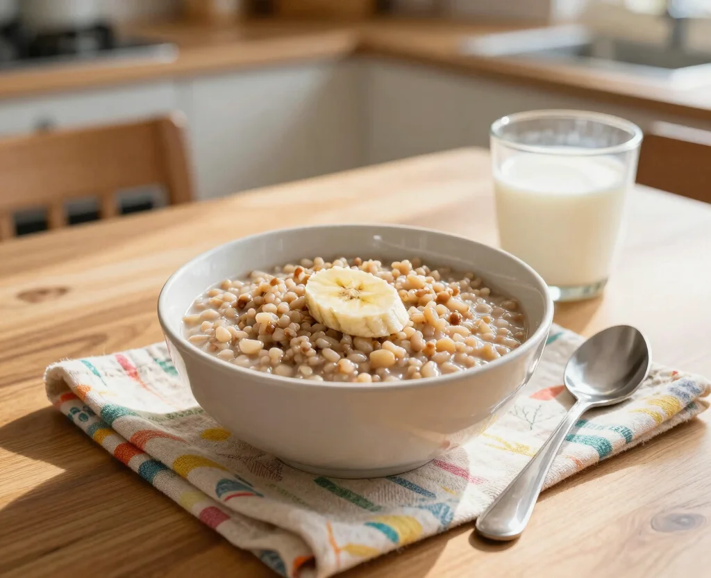 3. Mix in the mashed banana for natural sweetness. Serve warm.