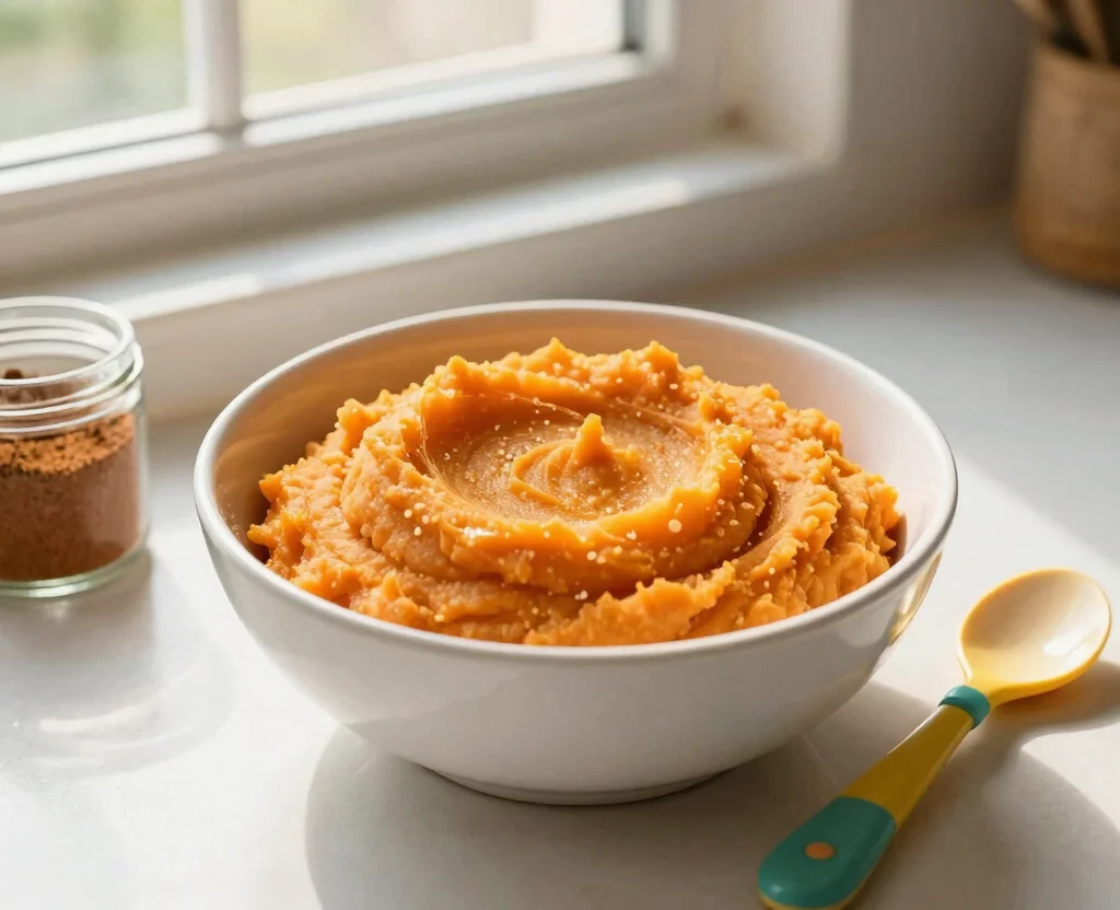 Sweet Potato Mash is a tiny chef’s favorite—naturally sweet, creamy, and packed with vitamins A and C. For busy parents on 1 Year Baby Food Recipes Indian, this quick mash with a touch of ghee and cinnamon makes meals instantly colorful and nutritious.