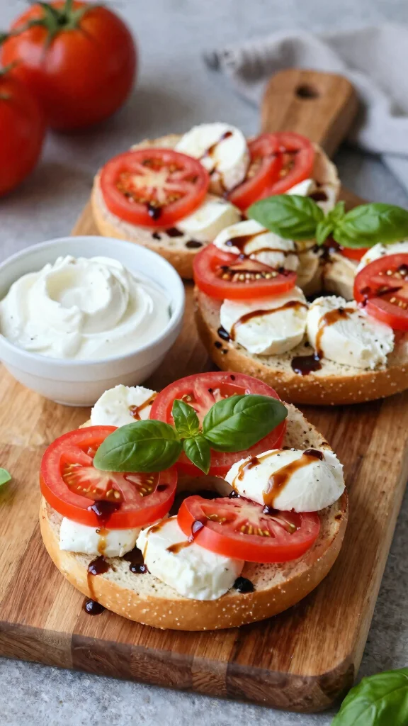 Experience the flavors of Italy with these fresh Caprese bagels! Layered with ripe tomatoes, fresh mozzarella, and basil, they bring a delightful Mediterranean touch to your breakfast. A drizzle of balsamic glaze and a spread of Greek yogurt add creamy, tangy excitement. They not only look fantastic but are also refreshing and healthy, making for a unique breakfast option!