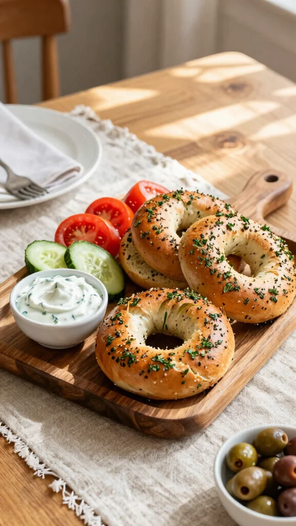 Bring the Mediterranean to your breakfast table with these aromatic herb bagels! Infused with rosemary, thyme, and olive oil, they offer a delightful savory flavor. Perfectly paired with Greek yogurt mixed with herbs, these bagels are great for brunch or a quick meal. Serve alongside olives and cucumbers for a complete Mediterranean experience!