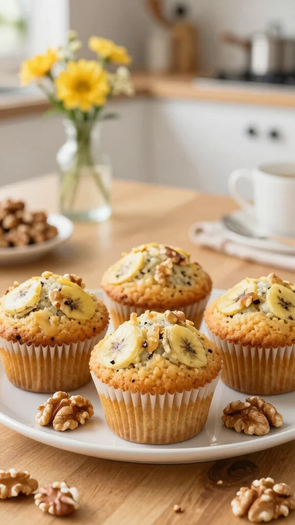Do you love the crunch of nuts in your baked goods? These banana nut muffins are a delightful treat! Packed with walnuts or pecans, they elevate the simple banana muffin into a flavorful experience. The Greek yogurt ensures they stay moist, making them perfect for breakfast or a nutritious snack.