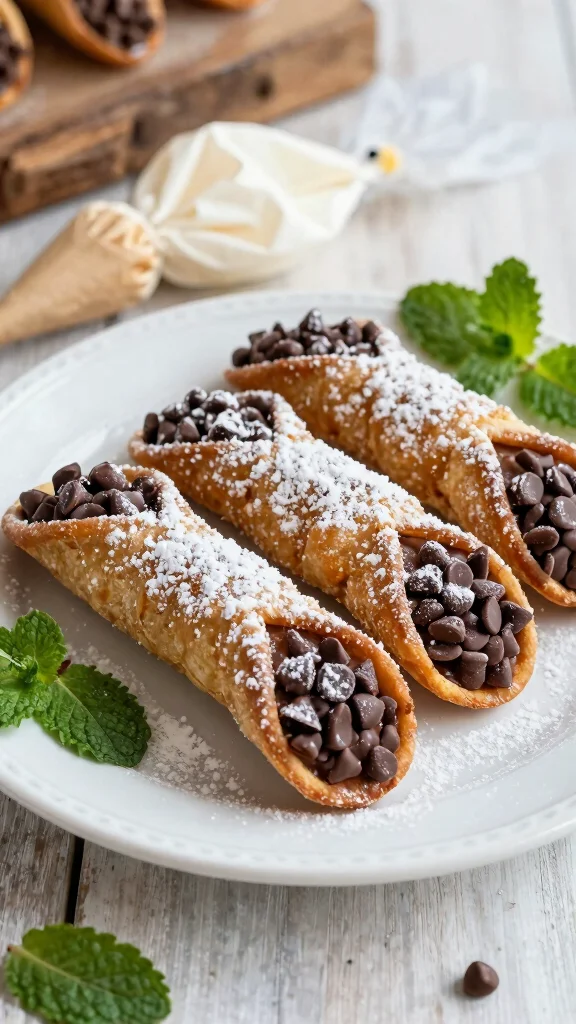 5. Cool and fill with a mixture of ricotta, powdered sugar, and chocolate chips.