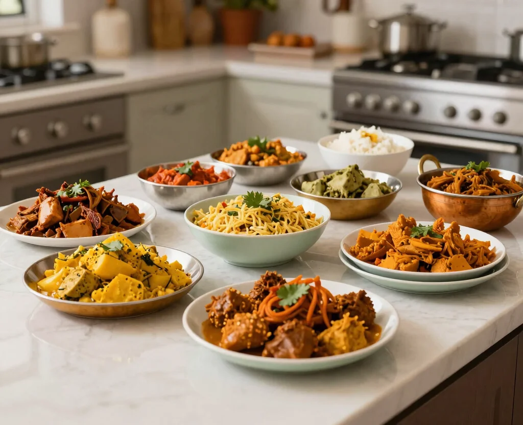 Time-saving tips to speed up simple Indian cooking without losing flavor: batch-cook spice blends and aromatics, keep a small mise en place, use a one-pot or pressure cooker/Instant Pot for faster cooking of vegetables and lentils, use canned tomatoes or tomato paste to deepen curry flavor quickly, and keep frozen vegetables on hand for instant stir-fries. Finish with fresh herbs like cilantro and a squeeze of lemon for brightness. These tricks help you make easy vegetable curries and simple Indian cooking on busy nights.