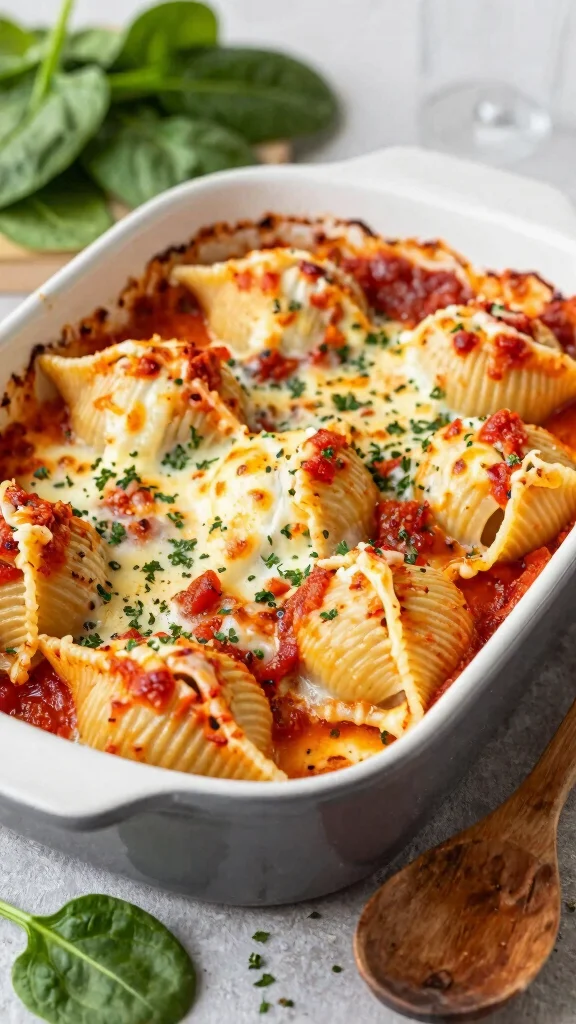 Prepare spinach and ricotta stuffed shells for a comforting, filling vegetarian option that feels gourmet.