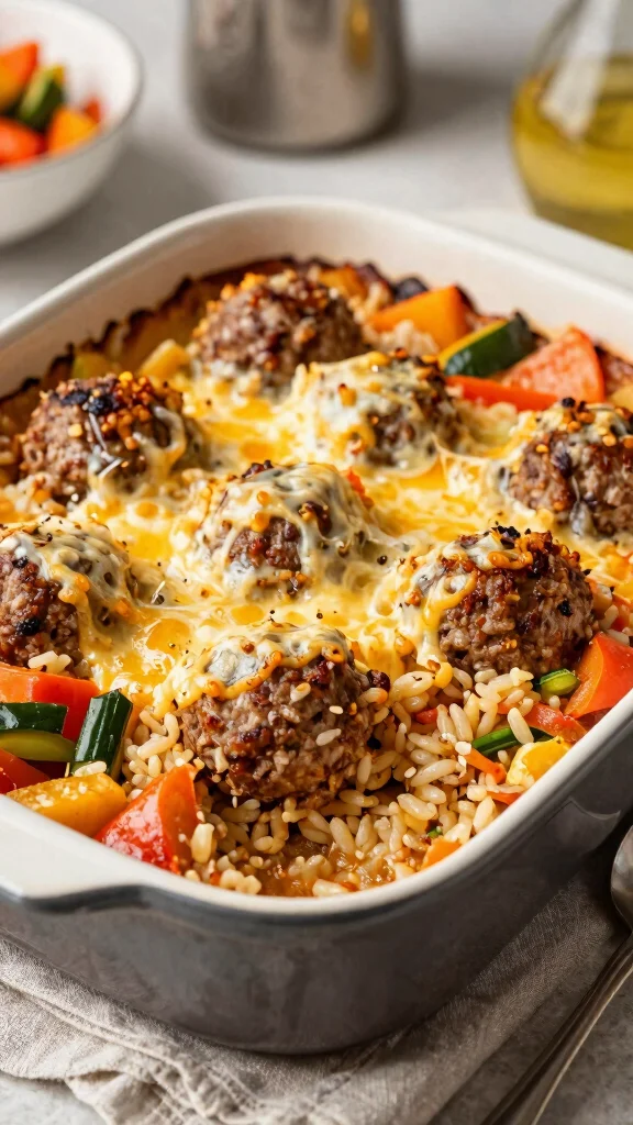 Looking for a comforting and filling meal? This meatball and rice casserole is an easy dish that the whole family will love! Mix frozen meatballs with rice, a creamy sauce, and your choice of vegetables, then bake everything together for a satisfying dinner.