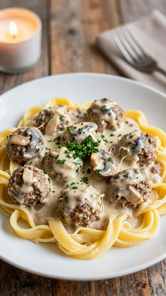 Indulge in a comforting plate of meatball stroganoff, a fantastic twist on the traditional dish! Using frozen meatballs, creamy mushroom sauce, and egg noodles, you can create a luxurious dinner that feels gourmet yet is surprisingly simple to prepare.