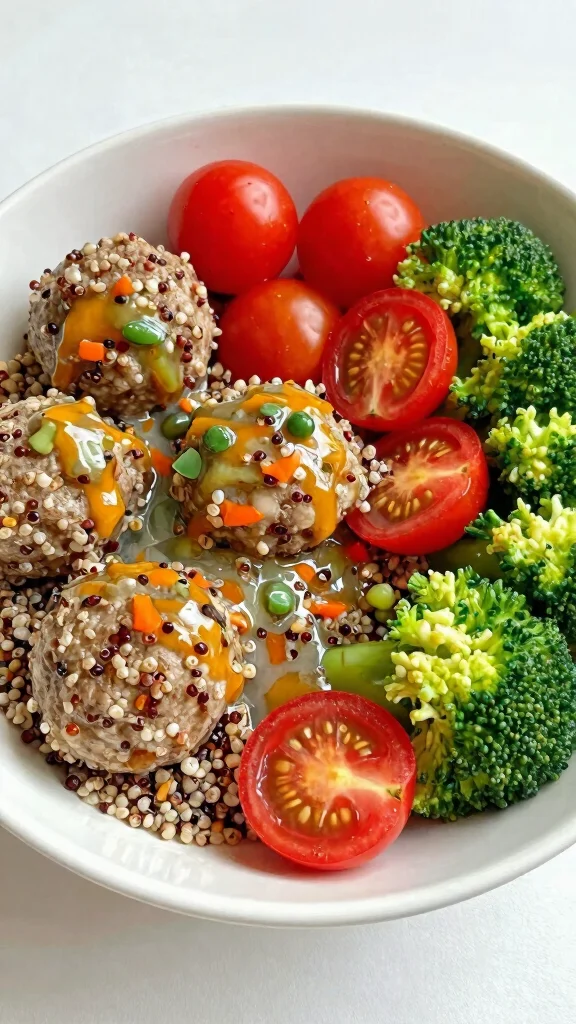For a healthy yet satisfying meal, try a meatball and quinoa bowl! This dish offers a wonderful balance of protein and whole grains, making it a nutritious option for busy families.
