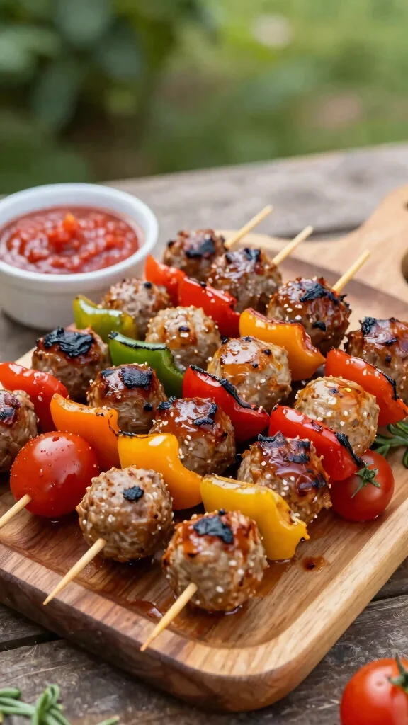These Italian meatball skewers are perfect for parties or a fun weeknight dinner! Simply thread cooked meatballs onto skewers with cherry tomatoes, bell peppers, and zucchini for a colorful and delicious meal.