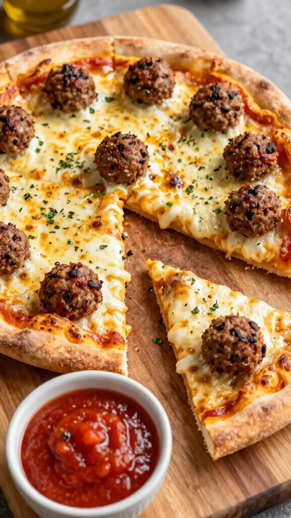 Who doesn’t adore pizza? This meatball pizza brings a fun twist that’s sure to delight the whole family. Top your favorite pizza dough with marinara sauce, mozzarella cheese, and, of course, plenty of meatballs. Bake until the cheese is bubbly and the crust is golden brown.
