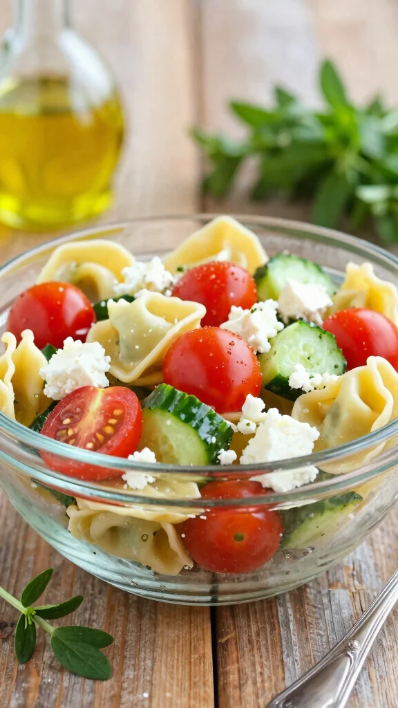 For gluten-free menus, use gluten-free tortellini or swap to chickpea pasta for extra protein and texture. You can also make it dairy-free by keeping olives, cucumber, tomato, and herbs as the stars and relying on olive oil and lemon for the tang.