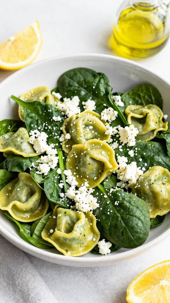 2. In a large bowl, combine tortellini, spinach, and feta.