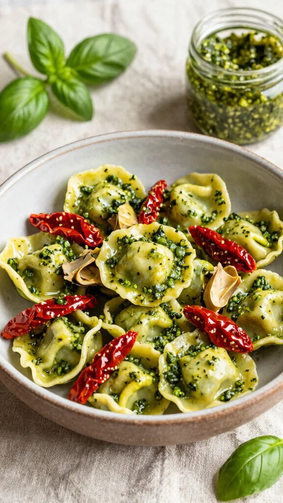 Fun fact: Mediterranean pesto tortellini salad comes together in about 20 minutes and serves 6. The pesto’s richness elevates every bite, even with pantry staples like sun-dried tomatoes and artichoke hearts.