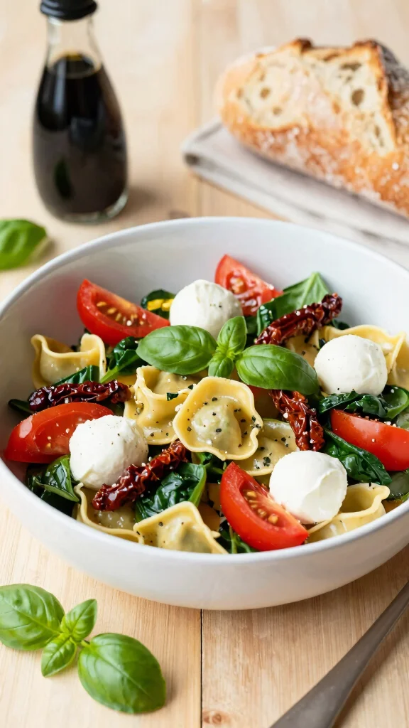 If you’re looking for a salad that’s bursting with flavor, this sun-dried tomato and spinach tortellini salad is just the ticket! The richness of sun-dried tomatoes combined with fresh baby spinach creates a unique taste experience, enhanced further by creamy mozzarella balls.
