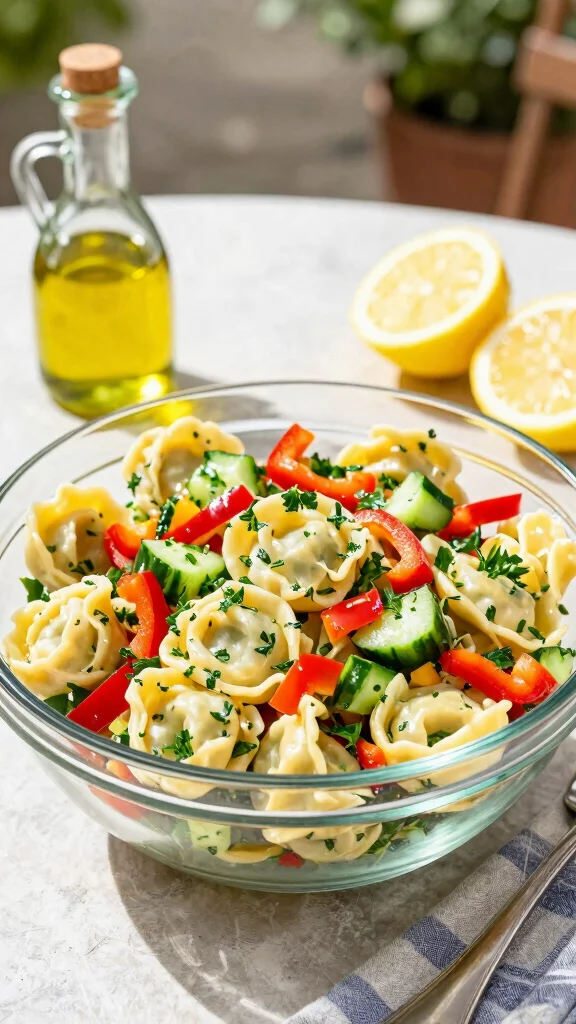 Brighten your day with a zesty lemon and herb tortellini salad! This refreshing recipe features a medley of fresh herbs like parsley and dill, providing a vibrant twist to uplift your meal. The lemon vinaigrette drizzled on top adds a burst of flavor that ties everything together beautifully.