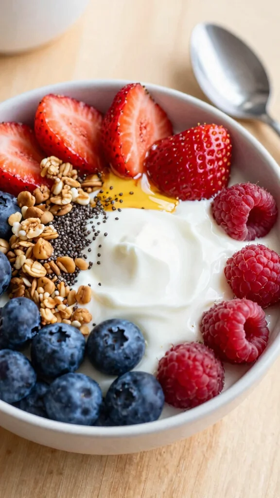 Start with plain Greek yogurt and top it with fiber-rich goodies (berries, oats, chia seeds) and a source of healthy fat (nuts, nut butter) to create a satisfying bowl. This approach aligns with high protein greek yogurt recipes that keep you full longer without extra sugar.