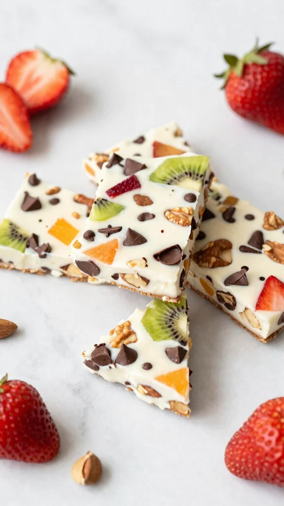 Satisfy your sweet cravings guilt-free with this Chocolate Chip Yogurt Bark! It’s a fun and healthy snack that’s simple to whip up and ideal for sharing. By spreading Greek yogurt onto a baking sheet and topping it with chocolate chips, nuts, and fruits, you create a delicious treat that’s packed with protein but feels like dessert. Freeze it, break it into pieces, and you have a delightful snack ready to enjoy anytime!