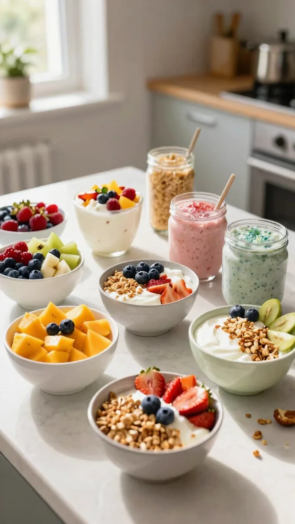 Tip: aim for about 25-35g protein per serving and 5-10g fiber. Adjust fats to keep calories in check and choose unsweetened yogurt to keep added sugars low.