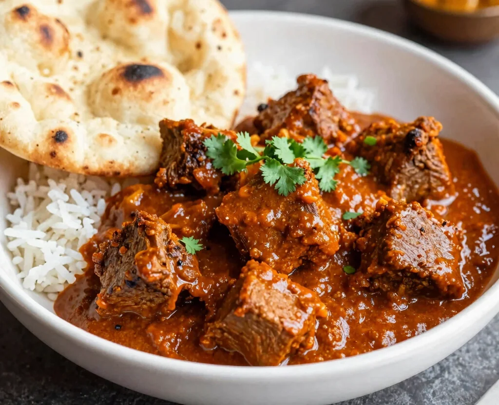 Fun fact: Mutton Rogan Josh shines when mutton simmers slowly—traditionally 2 hours—but a pressure cooker can trim that to about 45 minutes. A yogurt-based sauce keeps the meat tender and rich, making a family-friendly Indian dinner doable on busy weeknights.