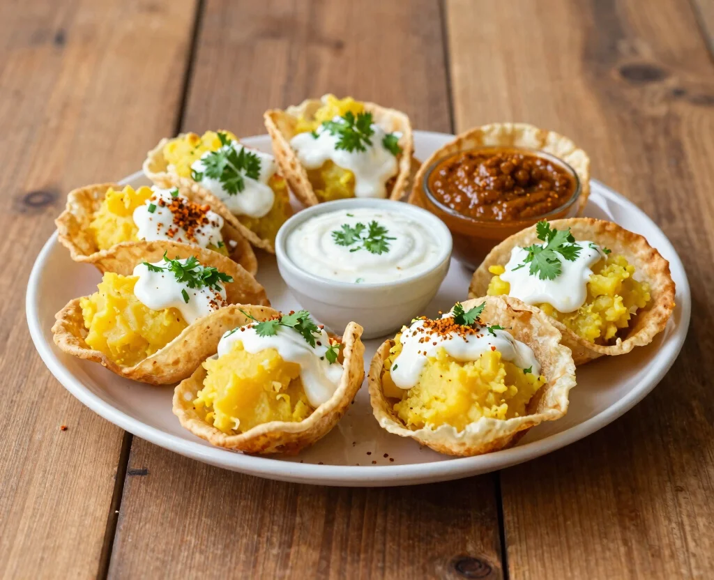 For a crowd-pleasing spread, try classic traditional Indian nibbles like mathri, chakli, khakhra, and bhujia—all cozy companions for chai. Pair them with savory tea time treats like small suji or besan-based bites to keep things crunchy and satisfying. You can also add sev puri-style crunch on a small plate for a fun, quick option that still feels traditional.