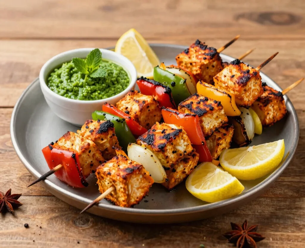 Paneer tikka bites – quick marinate and bake for a cheesy, savory bite.