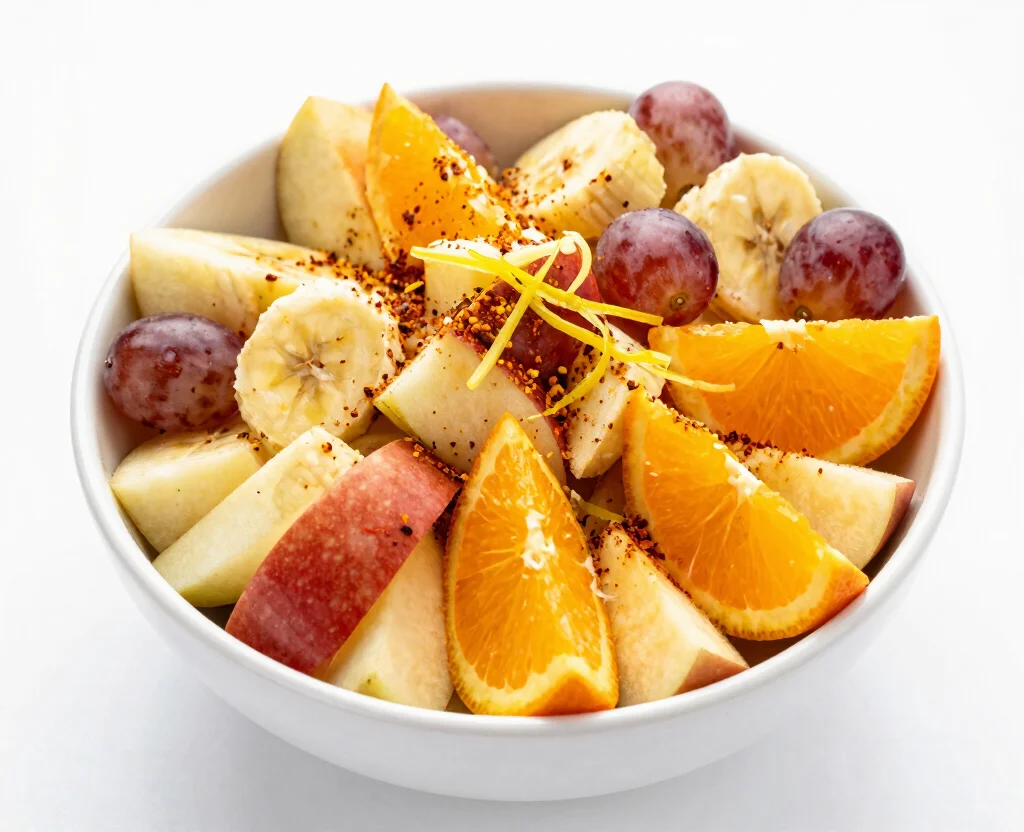 2. Sprinkle chaat masala and drizzle lemon juice over the fruit.