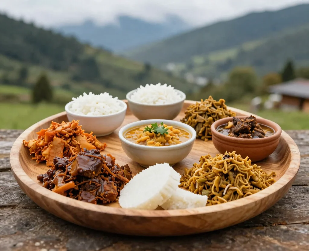 Are you eager to try something unique and flavorful? A Sikkimese thali is a delightful mix of Gundruk (fermented leafy greens) and Dhindo (buckwheat porridge). This vegetarian thali showcases local ingredients and bold flavors, making it a healthy choice for any meal. The emphasis on fresh produce provides a light yet satisfying dining experience that will intrigue your palate.
