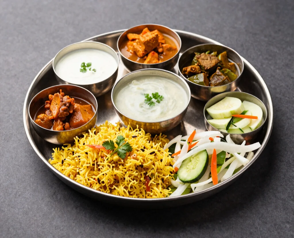 An Indian Thali Vegetarian is a complete meal served on a single platter, featuring a curated variety of dishes that showcase the range of vegetarian Indian cuisine. It typically includes a grain (rice or roti), a dal or curry, a vegetable dish, chutney or pickle, a yogurt or raita, and a dessert. What makes it special is the regional twist—you can explore thali platter ideas from different Indian states, each delivering a distinct flavor profile while fitting into the traditional Indian thali format.