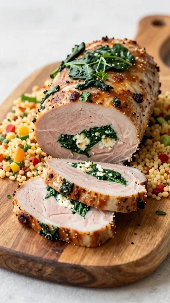 Looking to impress at your next family dinner? The Italian Mushroom & Spinach Stuffed Pork Loin is a showstopper, combining juicy pork with a flavorful filling of earthy mushrooms and fresh spinach. Not only does it taste amazing, but it also provides a nutritious boost that everyone will appreciate.