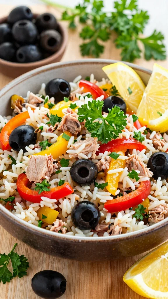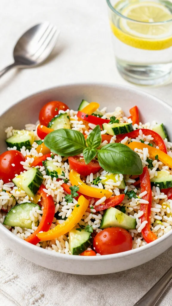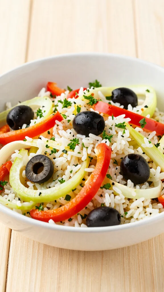 Start with cooked rice (short-grain or medium-grain works best) cooled to room temperature. For a classic Italian touch, mix in diced tomatoes, cucumber, red onion, olives, and mozzarella pearls or tuna. Add fresh herbs like basil and parsley. Dress with extra-virgin olive oil, lemon juice, or red wine vinegar, and a pinch of salt and pepper. To keep it authentically Mediterranean, skip mayo and rely on a bright vinaigrette. Want to customize? Try pepperoncini, artichoke hearts, roasted peppers, sun-dried tomatoes, or capers for extra punch. If you’re dairy-free, swap cheese for avocado or chickpeas. Make-ahead tip: let flavors meld in the fridge for 1–4 hours, then toss with greens just before serving. Serve cold as a refreshing main or side, a perfect fit for easy Italian salads and summer rice salads.