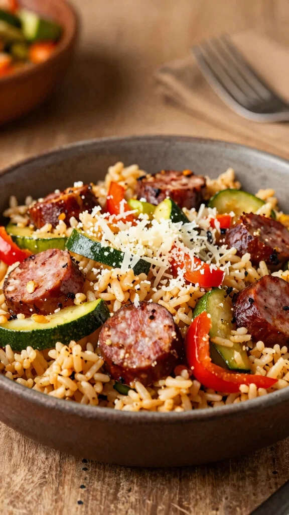 3. In a large bowl, combine the cooked rice and sausage mixture, tossing everything together well.