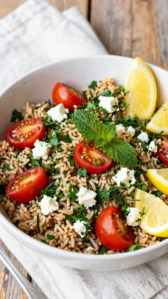 Yearning for that fresh Mediterranean essence? This Herb Rice Salad is a delightful mix of fresh parsley, dill, and mint, all tossed with cherry tomatoes and crumbled feta cheese, making every bite a burst of flavor. The zesty lemon juice and olive oil dressing tie everything together, creating a light yet satisfying dish perfect for summer gatherings or a quick lunch.