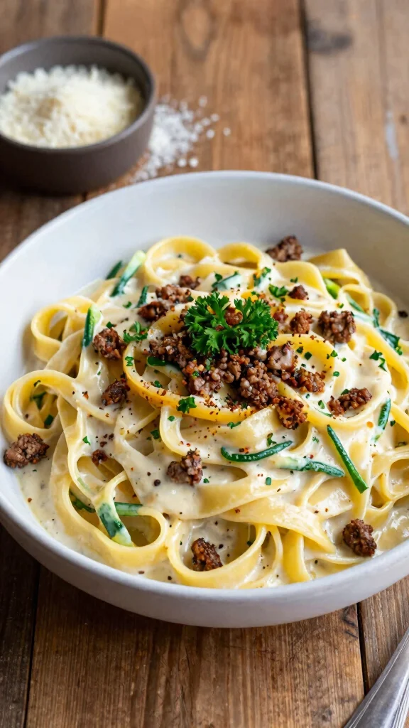 Indulge in a creamy Italian sausage fettuccine Alfredo that satisfies your cravings without the carbs of traditional pasta! By using zucchini noodles or shirataki noodles, you can enjoy the comforting taste of fettuccine with a lightened twist. The homemade Alfredo sauce, crafted with heavy cream and parmesan cheese, pairs perfectly with savory Italian sausage, creating a decadent dish that’s simply irresistible. Finish it off with a sprinkle of parsley for a touch of color and freshness. This dish is sure to impress at any dinner party!
