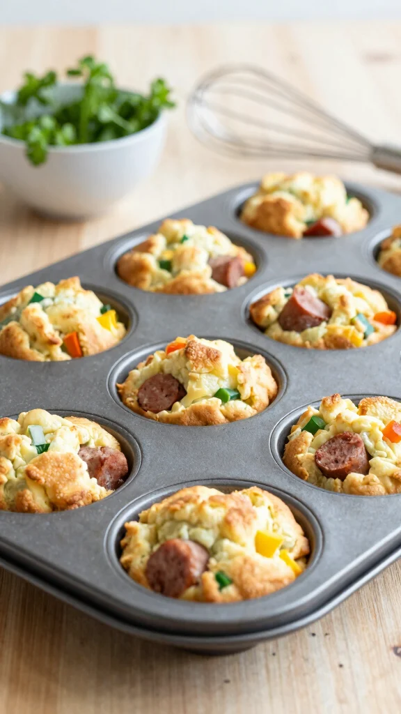 Looking for a quick breakfast that packs a punch? These Italian sausage and egg muffins are your answer! Bursting with flavor and protein, they’re perfect for busy mornings when you need something nutritious and satisfying. Simply mix cooked sausage with eggs and your favorite veggies, pour into muffin tins, and bake until golden and fluffy. You can easily switch up the fillings to include spinach, cheese, or tomatoes, keeping your breakfast interesting. Plus, they are fantastic for meal prep and freeze beautifully for future meals!