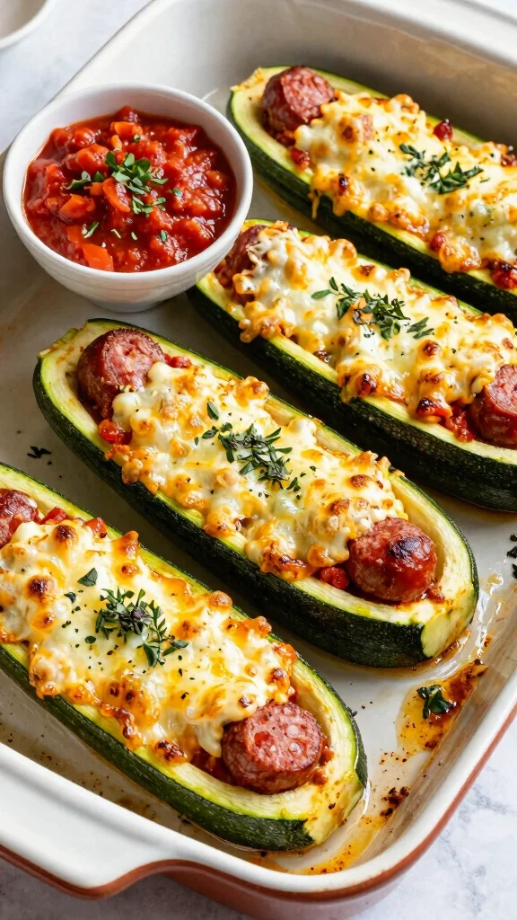 Looking for a fun and healthy meal idea? These Keto Italian sausage and zucchini boats are a fantastic choice! With halved zucchinis hollowed out and filled with a spicy mixture of cooked sausage, marinara sauce, and cheese, you get a delicious dish that’s both satisfying and low-carb. Once baked, the zucchinis become tender, and the filling gets all bubbly and cheesy, making it as pleasing to the eye as it is to your taste buds. Perfect for meal prep or a family dinner, these boats will leave everyone craving more!