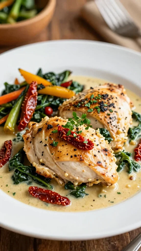 Want real low carb Italian recipes that feel like comfort food? Tuscan garlic chicken delivers creamy flavor with spinach and sun-dried tomatoes—sear, simmer, and stay keto-friendly in one pan.