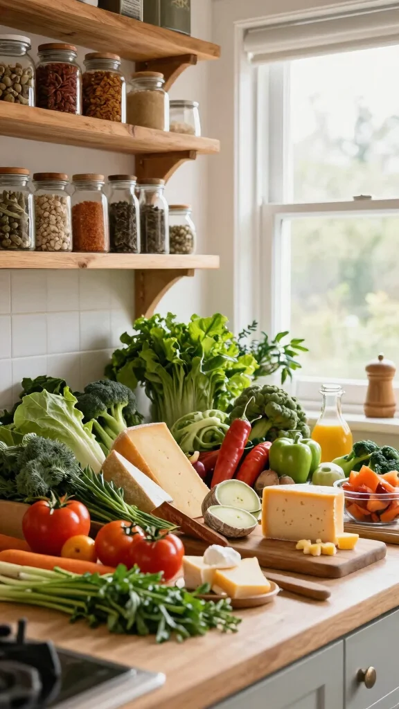 Stock olive oil, garlic, canned tomatoes with no added sugar, dried oregano and basil, and fresh basil. Keep cheeses like mozzarella and parmesan, heavy cream, and eggs for creamy sauces, plus almond or coconut flour for breading and thickeners. For pasta substitutes, have zucchini, cauliflower, konjac noodles, and hearts of palm pasta on hand to whip up healthy Italian meals quickly.