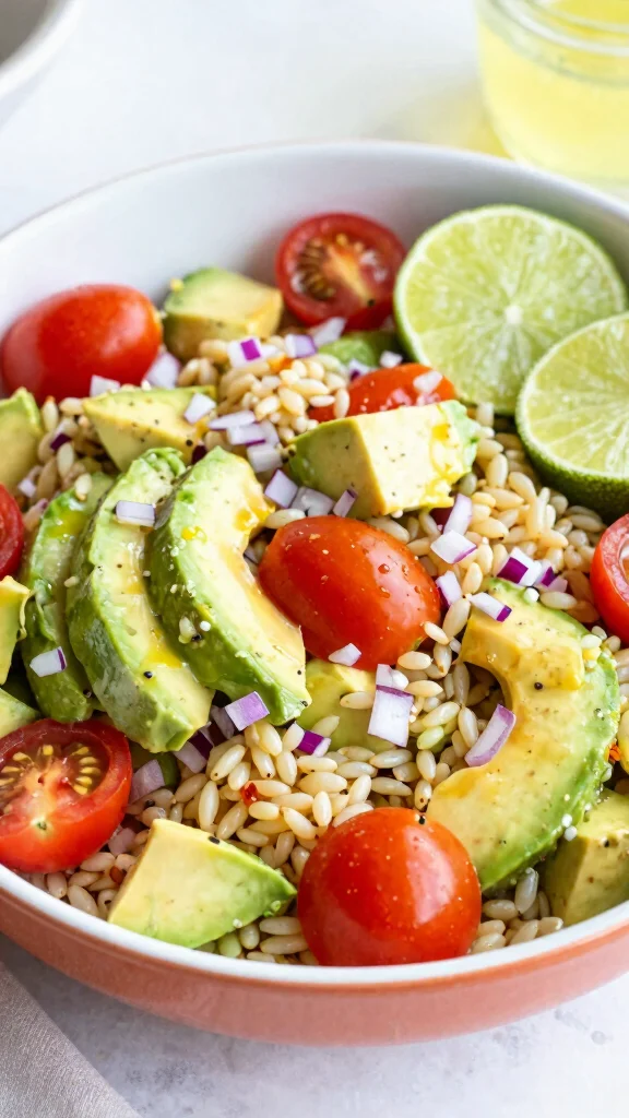 Craving something creamy and zesty? The Orzo Salad with Avocado and Lime combines smooth avocado with bright lime juice for a dressing that’s simply irresistible. The rich texture of the avocado pairs perfectly with orzo and fresh veggies, making this salad hearty and satisfying.It’s a great choice for a light lunch or as a filling side at any gathering, and you can easily customize it with protein like grilled chicken or beans!