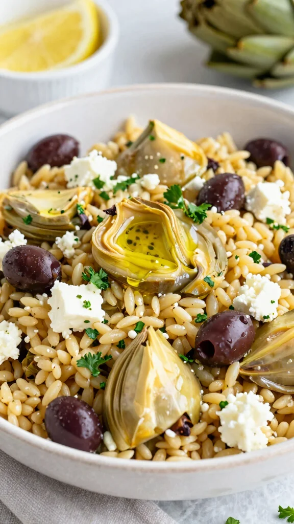 Artichokes add a fantastic touch to Mediterranean dishes, and this Greek Orzo Pasta Salad with Artichokes showcases their deliciousness! Tender artichokes paired with orzo, olives, and feta create a delightful combination that’s both flavorful and satisfying.Bright flavors of lemon and fresh herbs elevate this salad, making it a crowd-pleaser at any gathering. Plus, it’s quick and easy to prepare!