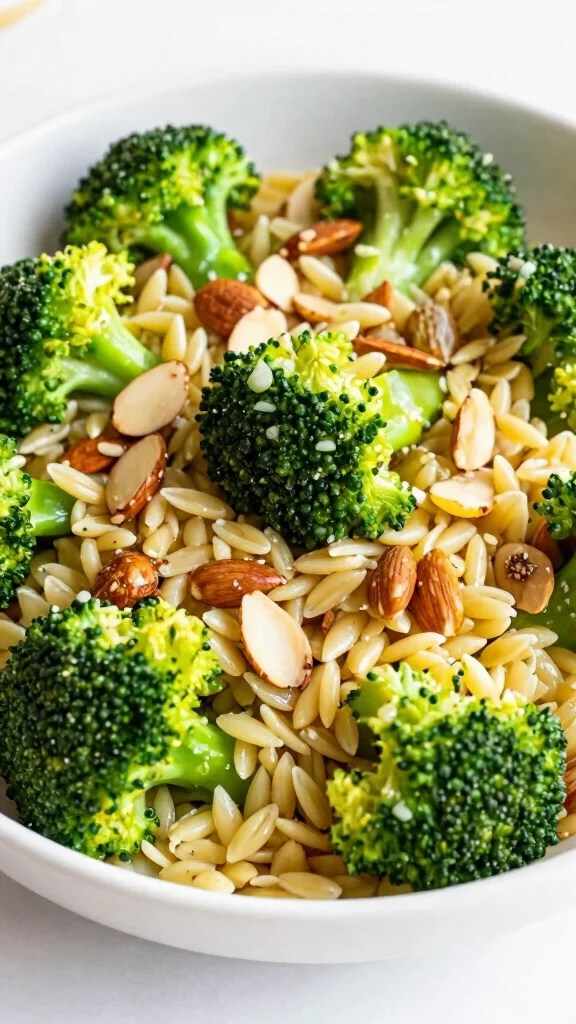 Fun fact: This orzo greek salad with broccoli and almonds packs a protein punch—roughly 15–18g per serving—thanks to almonds and broccoli alongside orzo. It’s perfect for meal prep or a nourishing BBQ side.