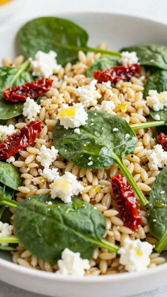 Did you know this Spinach and Feta Orzo Salad can cut prep time by 10 minutes for a week of lunches? Cook the orzo, toss with spinach, feta, and sun-dried tomatoes, then drizzle olive oil and lemon for a simple orzo greek salad that stays fresh for lunch all week.