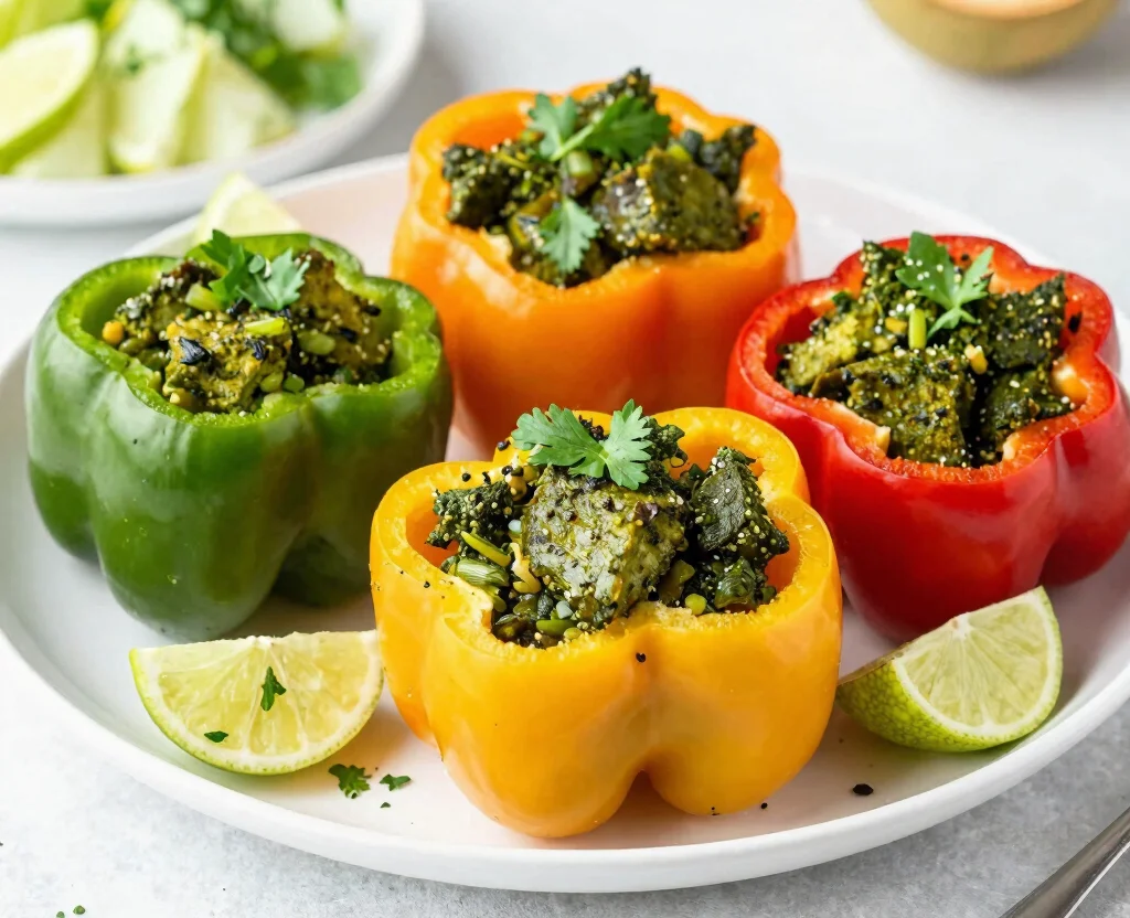 Add a colorful twist with Palak Paneer Stuffed Peppers! Filling vibrant bell peppers with a delicious mixture of palak paneer makes for an eye-catching and nutritious meal. Oven-baked until the peppers are tender, this dish offers flavor and presentation in one. Perfect for entertaining or a fun family dinner!You’ll love the combination of flavors and the pop of colors in this dish!