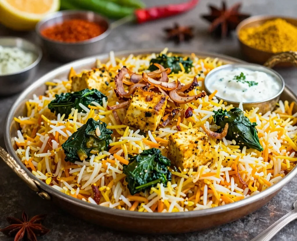 Indulge in the rich flavors of Palak Paneer Biryani! This unique one-pot dish combines the creaminess of palak paneer with aromatic biryani spices, creating a hearty and satisfying meal. The layered flavors and textures make this biryani a special treat for any occasion. Perfect for impressing guests or enjoying a festive dinner at home, this recipe will surely become a family favorite!You’ll love the delightful fusion of flavors in every bite!