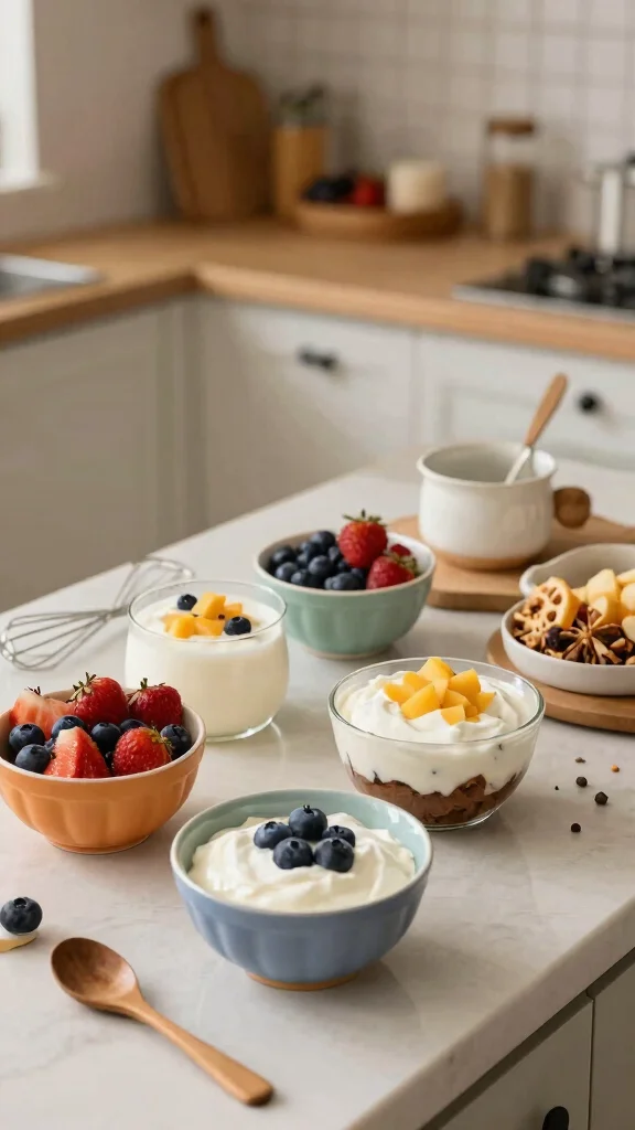With easy yogurt recipes, you only need pantry basics: plain Greek yogurt, a little sweetener (honey, maple, or stevia), and your favorite fruit or flavorings. Layer or blend, chill to set, and you’re done.
