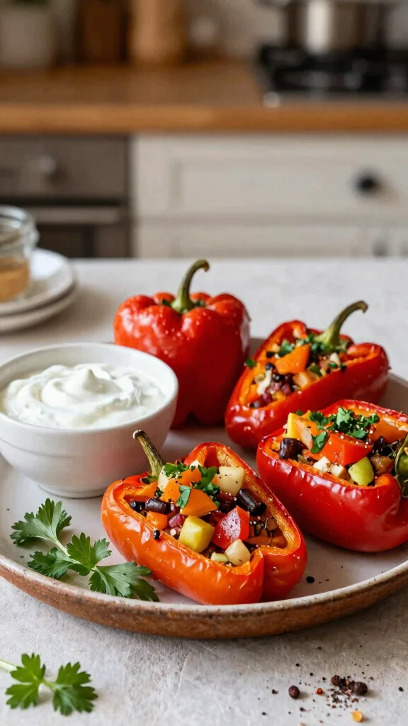 Make Mediterranean Stuffed Peppers using savory Greek yogurt for a nutritious and filling meal option.