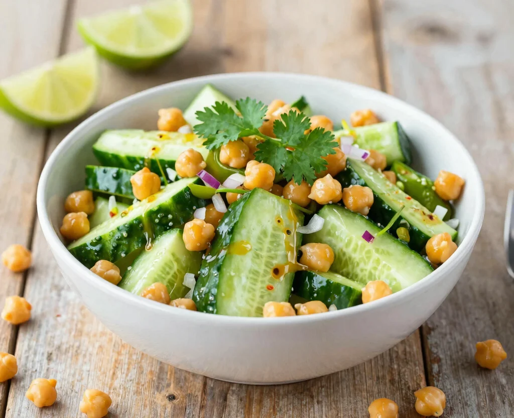 Craving something refreshing and zesty? This Spicy Cucumber and Chickpea Salad hits the spot with its delightful crunch and hearty chickpeas. The combination of fresh cucumbers and protein-rich chickpeas not only satisfies your hunger but also offers a burst of flavor with a tangy lime dressing that makes every bite irresistible.