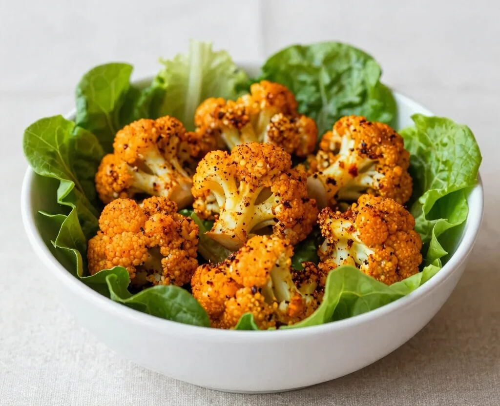 4. In a large bowl, combine salad greens and roasted cauliflower.