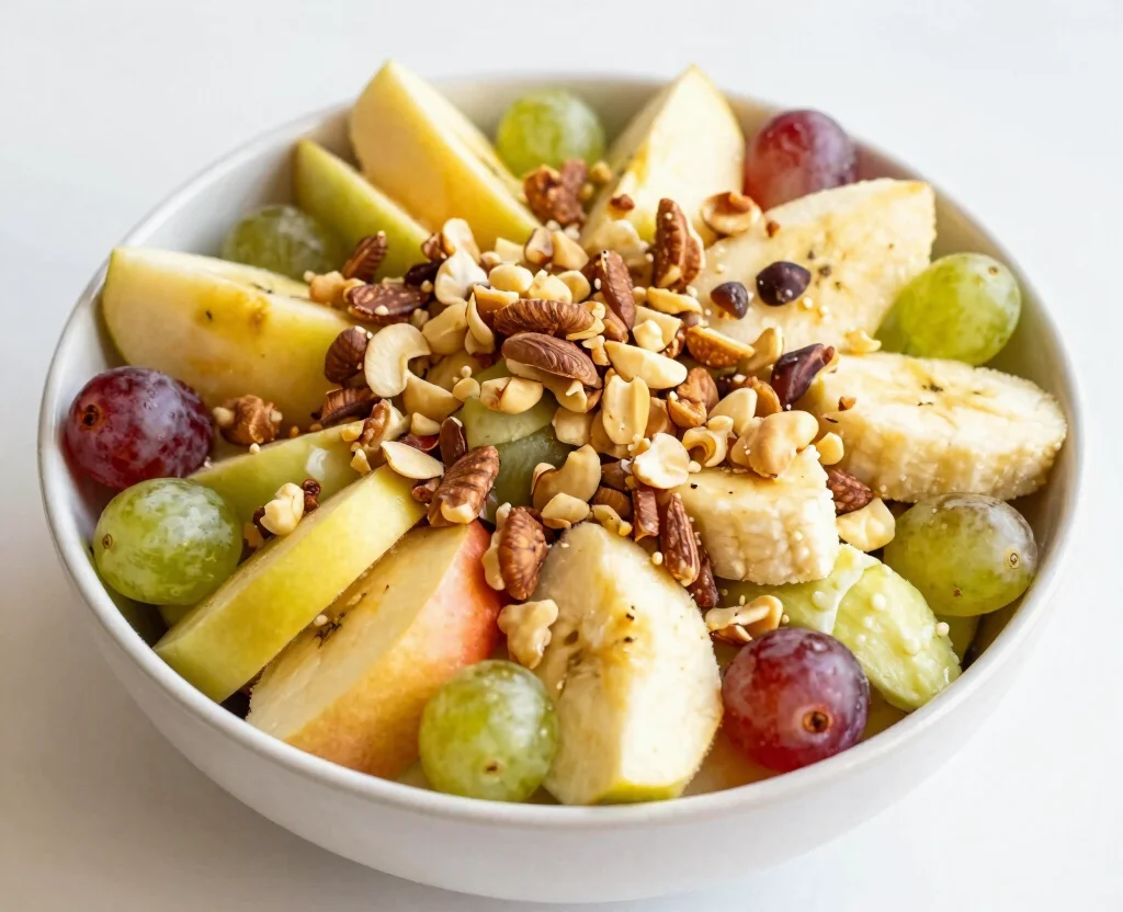 Looking for a sweet yet healthy treat? End your meal with this delightful Fruit and Nut Salad! Packed with fresh fruits and crunchy nuts, it’s a satisfying way to incorporate natural sweetness into your diet. Perfect as a light dessert or refreshing snack, this salad is sure to satisfy your cravings without the guilt.