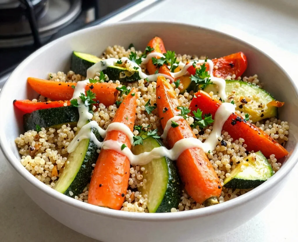 Looking for a filling yet nutritious dish? This Quinoa and Roasted Vegetable Salad is your answer! The natural sweetness of roasted veggies combined with fluffy quinoa creates a satisfying meal. Tossed in a zesty lemon-tahini dressing, this salad not only pleases the palate but also keeps you energized throughout the day.